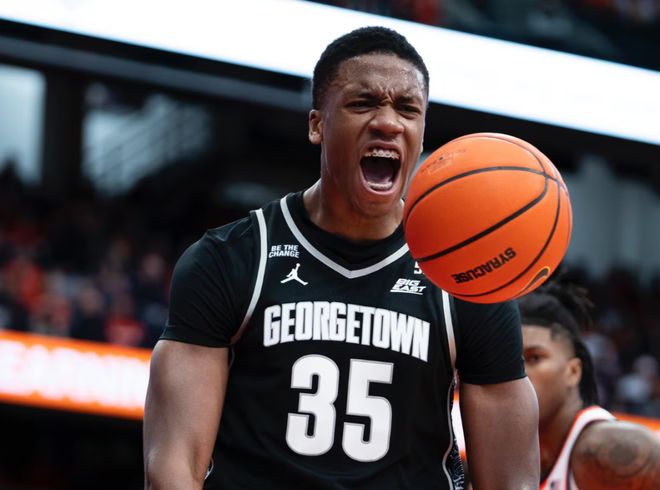 托马斯索伯是雷霆今年在首轮15顺位选中的新秀(恰好比杨瀚森高1顺位),目前19岁,来自乔治城大学,司职中锋,联合试训时他的裸足身高2米06,臂展2米29,摸高2米77,体重119公斤(所有新秀最重)。其中大一赛季,索伯交出的数据是:出战24场比赛,场均上场31.5分钟,得到14.5分8.5篮板2.4助攻1.5抢断2.0盖帽,投篮命中率53.2%。