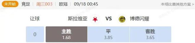 竞足 周三003 欧冠 斯拉维亚VS博德闪耀