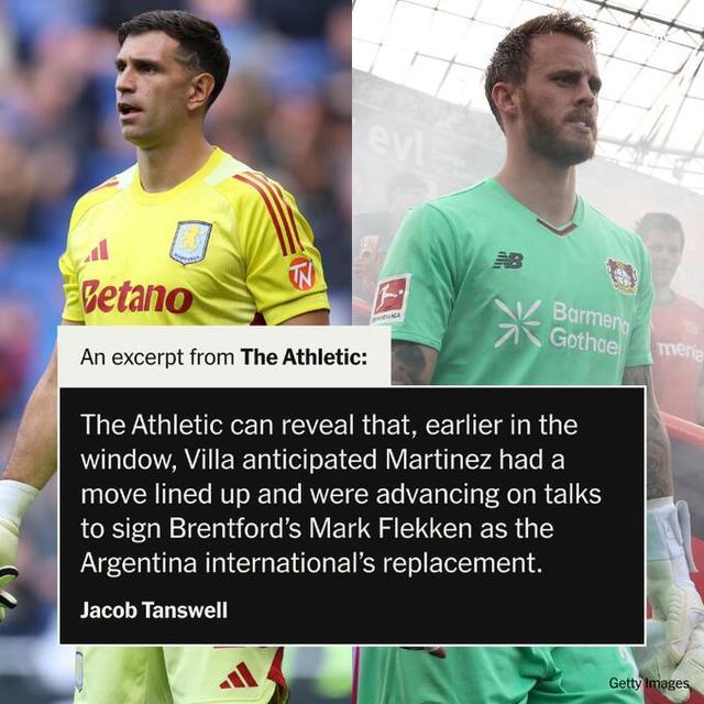 TA可以透露,在夏窗早期,维拉预计大马丁已经有了转会安排,并正在推进签下荷兰门将弗莱肯的谈判,以取代阿根廷人。