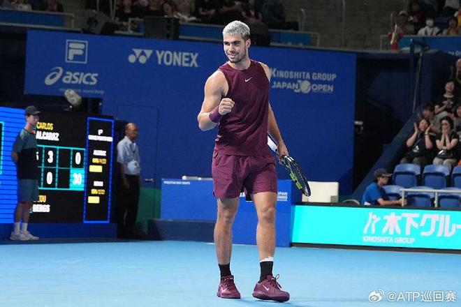 9月28日,ATP500东京站1/4决赛,头号种子阿尔卡拉斯以2-0(6-2、6-4)击败中岛布兰登,在连续参加的9站赛事均至少跻身四强,这也是卡洛斯本赛季巡回赛单打第65胜,半决赛他将对阵4号种子鲁德。
