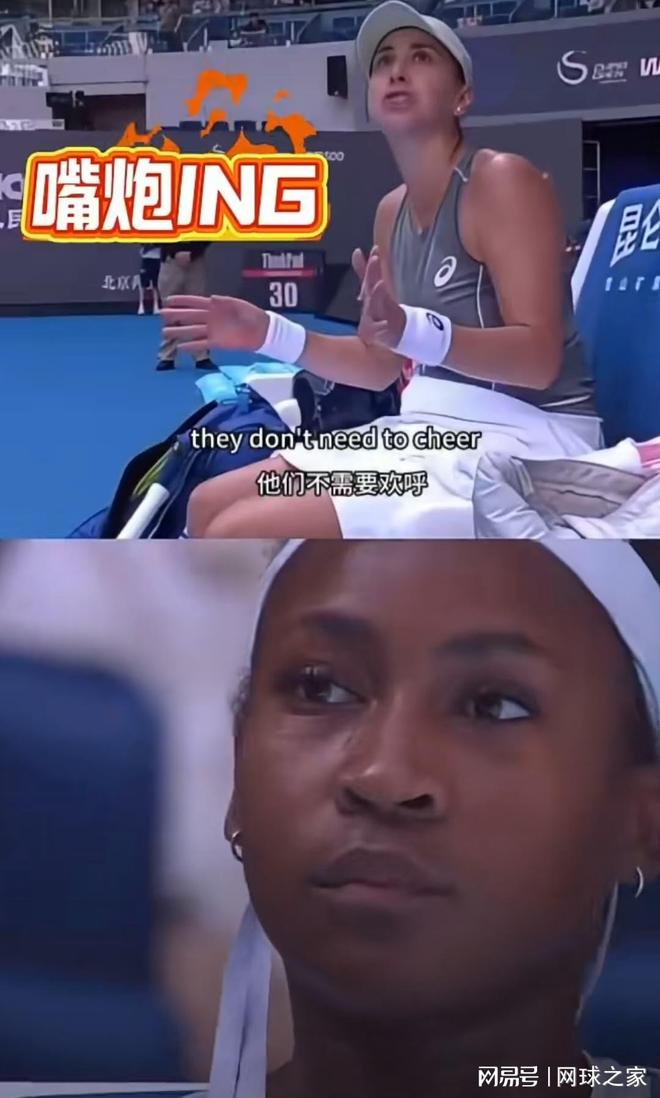 中网女单第四轮,在一场备受关注的网球比赛中,瑞士名将本西奇因不满美国新星高芙团队在关键分时的欢呼,当场怒吼“Shut Up”引发热议,然而高芙在赛后采访却淡然回应。
