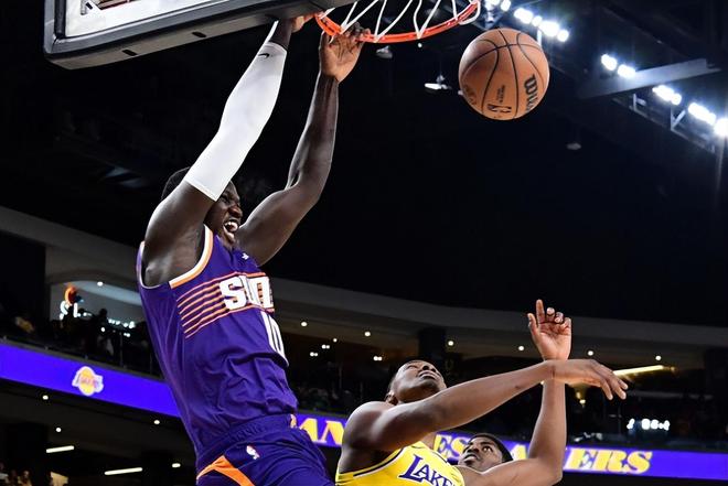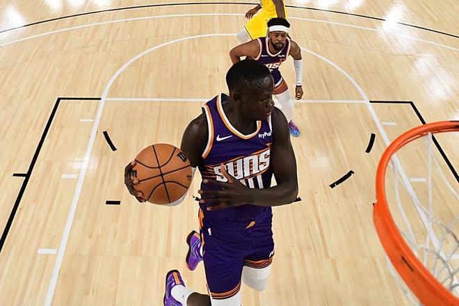 本场比赛中,太阳的替补内线新秀卡曼-马鲁阿奇(Khaman Maluach)的表现还是不错的。马鲁阿奇全场出场9分51秒,投篮2中1,罚球4中2,得到了4分6篮板的数据,还有1次失误和1次犯规,正负值为+2。马鲁阿奇在进攻端的能力确实是比较一般的,他确实是缺乏基本的得分能力,他也没有什么其他方面的突出才能。不过马鲁阿奇在防守端的表现还是相当不错的,他的篮板保护能力相当突出,他也能够有效利用自己在身体天赋方面的优势给对手制造巨大的麻烦。马鲁阿奇的整体作用还是比较突出的,他也是将自己的一些特点施展了出来。在出场时间有限的情况下能够做到这一点,也并不是一件容易的事情。