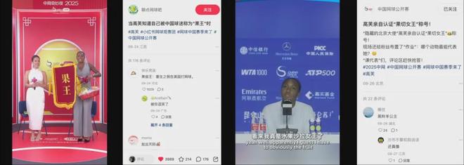 而中网官媒运营同样「活人感」十足,不仅肯定了球迷创造的昵称文化,还作为媒介传达给了球员,球员的反馈也为赛事增添了独有的特色。