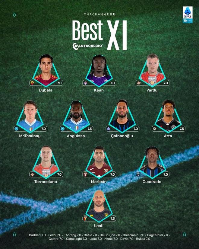 - 意甲 | 意甲第8轮最佳阵容:恰20、麦克托米奈、迪巴拉、瓦尔迪入选
