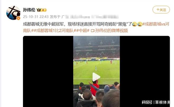 - 中超 | 恐遭罚蓉城球迷朝河南外援竖中指+学猴叫致其崩溃!比赛险中断