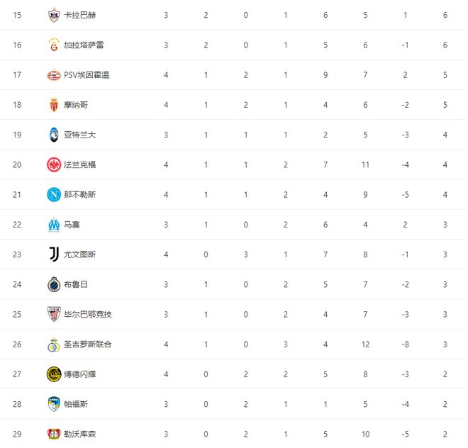 其他的比赛战况如下,布拉格斯拉维亚0-3阿森纳;马德里竞技3-1圣吉罗斯联合;托特纳姆热刺4-0哥本哈根;尤文图斯1-1葡萄牙体育;那不勒斯0-0法兰克福;博德闪耀0-1摩纳哥;奥林匹亚科斯1-1埃因霍温。