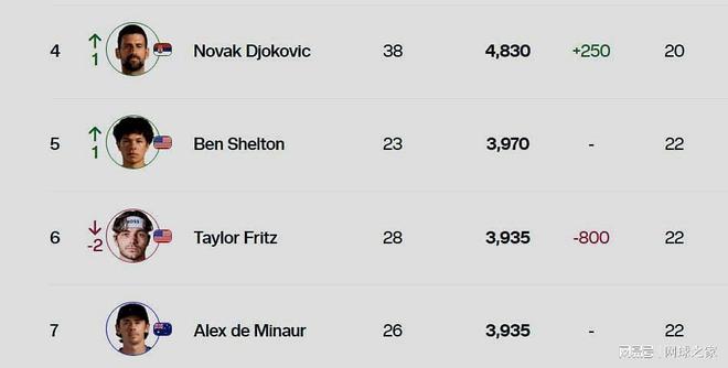 而辛纳则是被扣掉去年总决赛冠军的1500个积分,世界一哥的宝座被西班牙红星阿尔卡拉斯重新占据。当然,辛纳阿卡两人关于年终排名世界第一的争夺还没有结束,但是阿卡无疑机会更大。
