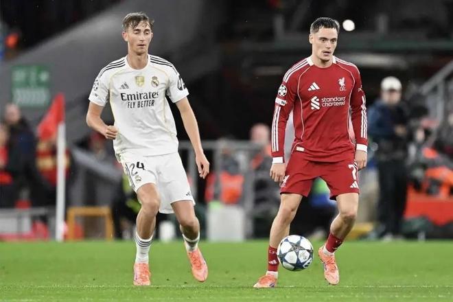 0-3惨败曼城,刚刚拿到2连胜找回自信心的利物浦又遭暴击。在伊蒂哈德球场,斯洛特的球队面对曼城的整体防守和单兵爆点突破,无论是比赛过程还是结果都惨不忍睹。但是在那之前,他们面对西甲霸主皇马却踢得虎虎生风,几乎将对手摁在地上暴捶。而利物浦大起大落的背后,是英超和西甲比赛质量上的巨大差距。