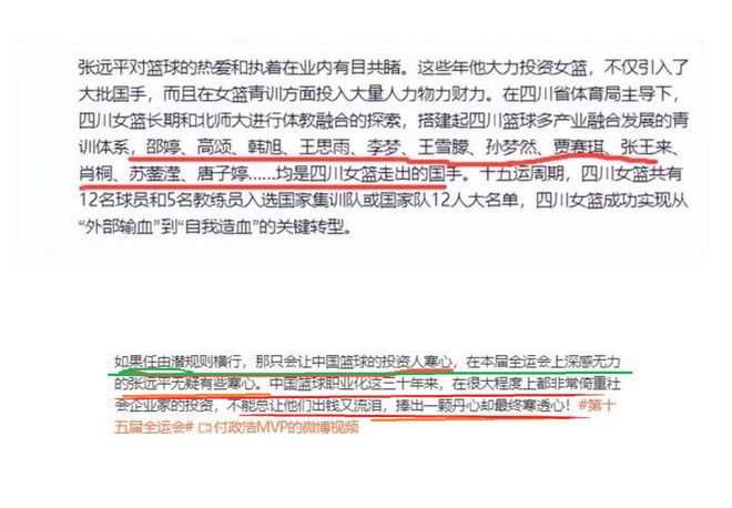 很不甘心?CBA名记付政浩:四川女篮本届全运会没有夺冠,是因为有一些事情超出了比赛范畴,如此情况,也是让四川女篮投资人张远平,感到失望和寒心。一些潜规则横行,让投资人感到无力和寒心……
