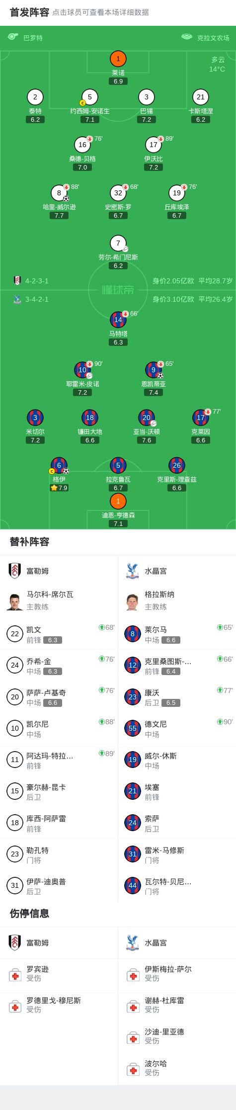 水晶宫21客胜富勒姆,格伊头球绝杀,恩凯蒂亚、威尔逊破门