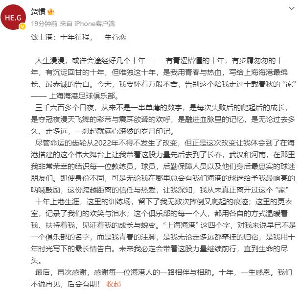 - 中超 | 10年,这次真要离开了!前国脚深情告别上海海港,近4年租借在外