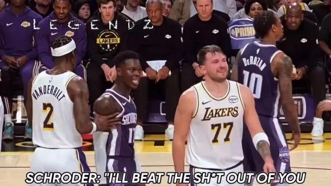 比赛过程中,国王队后卫施罗德与湖人球星 卢卡·东契奇 就爆发了激烈口角,双方的垃圾话交锋堪称白热化。